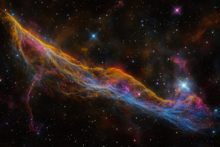 a tail flying radiantly across a starry sky, passing colorful nebulae generative ai