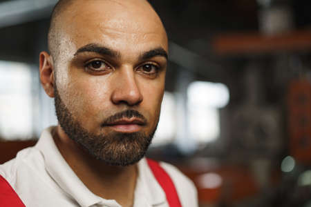 Men industrial engineer wearing a while standing in a heavy industrial factory. AI generated.