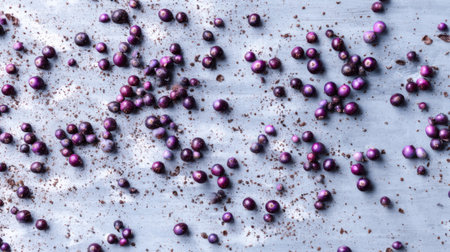 Delight in the beauty of fresh dark berries scattered on a soft pink background, showcasing their rich colors and textures, ideal for food photography and health-related projects.