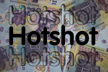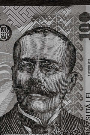 Selective focus on detail of LEI banknotes. Counting or giving Romanian LEI banknotes. World money concept, inflation and economy concept