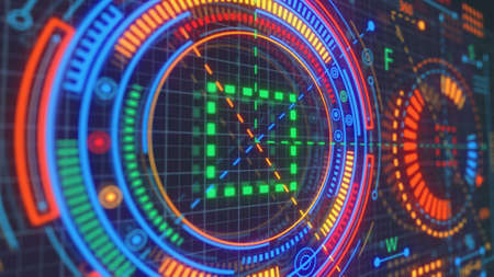 Process interface on display.Technology background.Engineering innovation.HUD digital design .3d illustration.