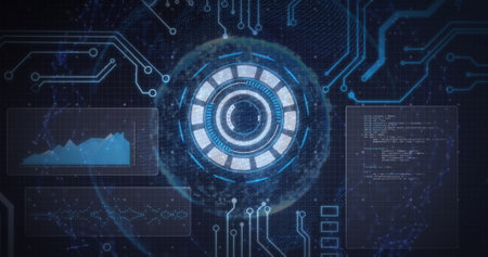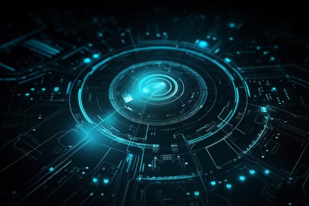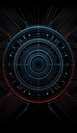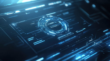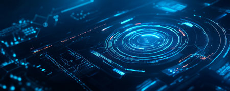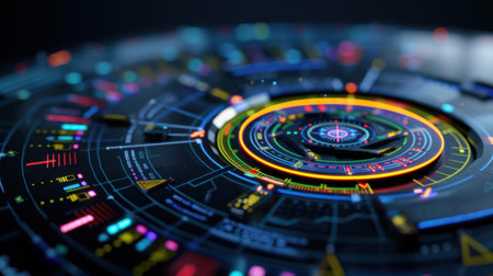 Futuristic digital interface displaying complex data visualization with circular patterns. That the image is generated using AI.