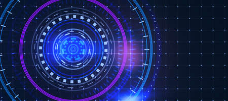 Technology neon background.Engineering innovation.HUD digital design .3d illustration.