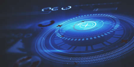 Futuristic user interface with HUD elements. 3D Rendering