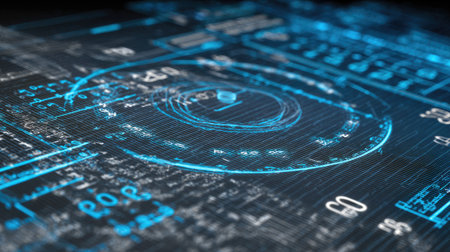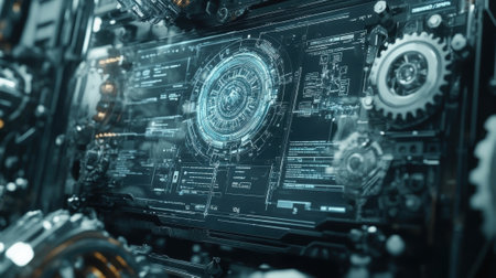 Detailed shot of a futuristic graphic with tech-inspired elements and a cool color palette, perfect for digital interfaces and technology-related content