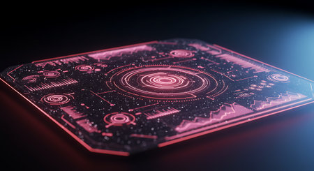 A sleek and futuristic data interface showcasing vibrant red graphics and intricate layouts, perfect for technology-themed projects or digital design.