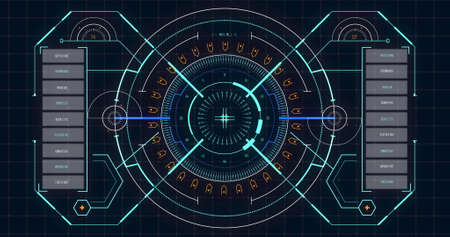 Futuristic hud displaying complex data analysis and processing information