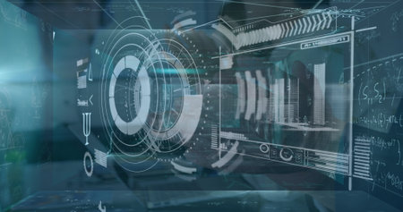 Explore a futuristic digital interface featuring intricate charts and graphs. This design illustrates technology concepts and sophisticated data visualization methods.