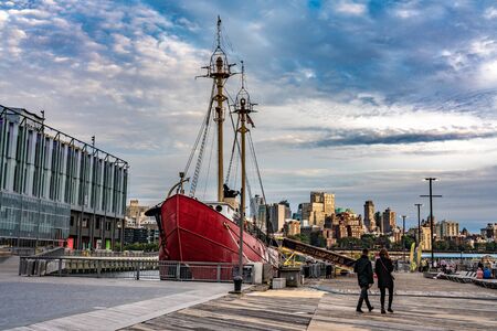 NEW YORK, USA - OCTOBER 08: This is a view of the Pier at the Seaport Historic district along the East River near the Brooklyn Bridge on October 08, 2019 in New York