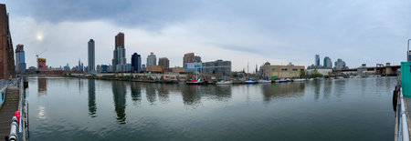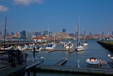 Panoramic view of the fabulous skyline of New York and the Big Apple as seen from an observation deck on the Hudson River in the United States.