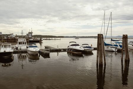 Burlington, Vermont - September 29th, 2019: View of Lake Champlain waterfront on a cool Fall day in Burlington, Vermont.