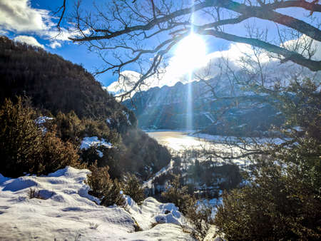 Mtkvari river in winter while walking to Jvary monastery near Mtskheta, Georgia