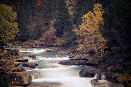 Waterfall in Ordesa National Park, Pyrenees, Huesca Province, Aragon, Spain.