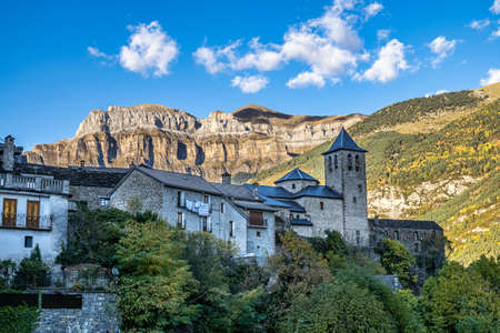 Torla, gateway to the Ordesa and Monte Perdido National Park in the Spanish Pyrenees, Aragon, Spain