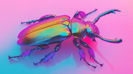 Beetle in neon light. 3D illustration. Macro.
