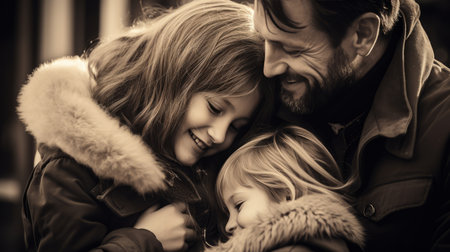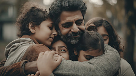 Parents embracing their daughters in a warm hug, fostering a loving and secure atmosphere filled with affection and joy