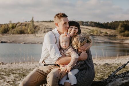 Portrait of a happy and funny young family outdoors.Family lifestyle concept
