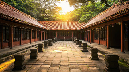 Taipei Confucian Temple Wisdom in Serena Landscape., generative AI