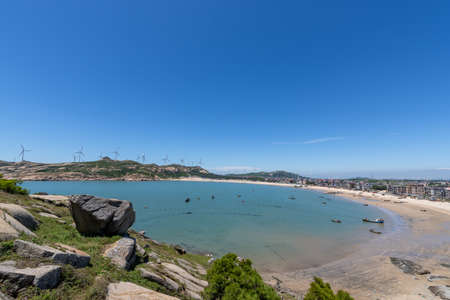 China seaside landscape and offshore fishing boats