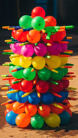 A dramatic, vertical 9:16 full-frame composition focusing on a high, centered stack of filled, color