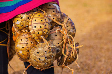 Loei province ,Thailand - July, 06, 2019 : Ghost Festival Phi Ta Khon.People are enjoy dressing with colorful clothes made from wood handmake in Loei province ,Thailand