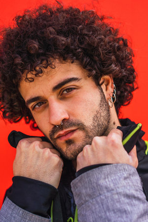 Young Adult with Curly Hair Showing Expression of Anger and Frustration Against Plain Background in Portrait Mode