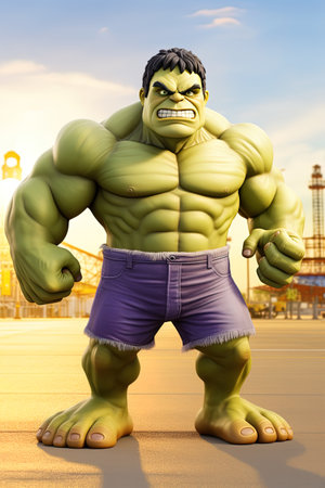 NONG BUA LAM PHU, THAILAND – FEBUARY 23, 2020: Superhero model statue, be the incredible HULK, shows the strength at PC Cowboy Town in NONG BUA LAM PHU province THAILAND.