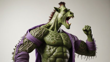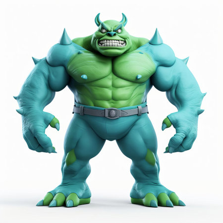 the mighty 3d monster superhero stands proudly isolated on a pristine white background, showcasing its full body in all its fantastical glory, with intricate details and vibrant colors, perfect for comic book art, digital illustrations, and fantasy designs, evoking a sense of power and adventure. ai generated