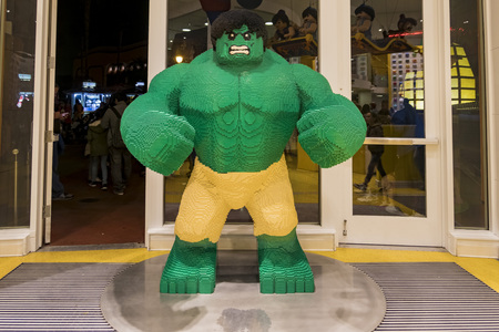Anaheim, NOV 11: Huge Hulk lego statue in the famous Downtown Disney District, Disneyland Resort on NOV 11, 2017 at Anaheim, Orange County, California, United States