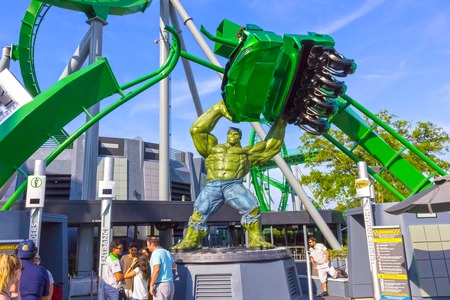 ORLANDO, USA - JANUARY 05, 2017: Incredible hulk coaster in Adventure Island of Universal Studios Orlando. Universal Studios Orlando is a theme park resort in Orlando, Florida.