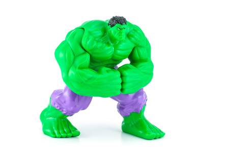 Bangkok,Thailand - May 08 ,2014: The Hulk toy character from the Hulk and avenger movie. There are plastic toy sold as part of the McDonald's Happy meals.