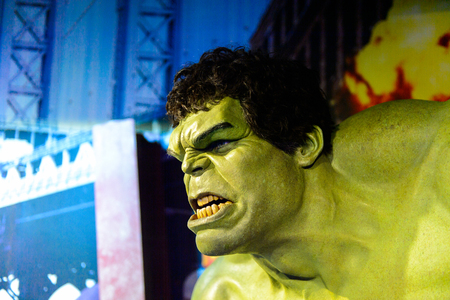 AMSTERDAM, NETHERLANDS - OCT 26, 2016: Hulk, Bruce Benner, Marvel section, Madame Tussauds wax museum in Amsterdam. One of the popular touristic attractions