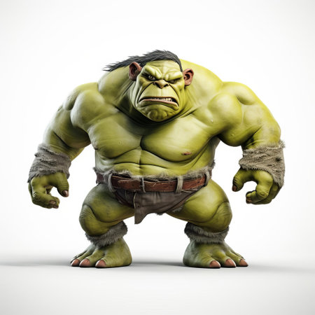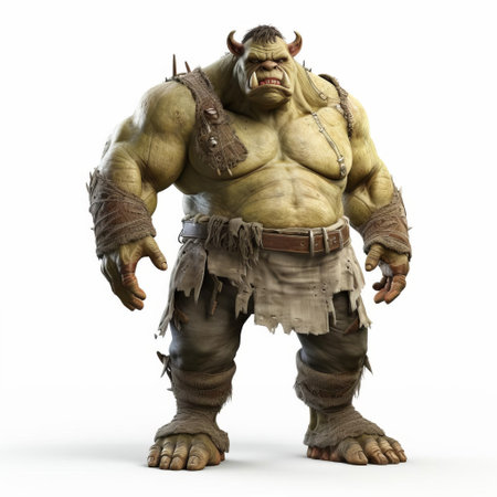 the ogre, a mythical creature from fantasy folklore, stands proudly in a powerful full-body pose on a crisp white isolated background, showcasing its imposing physique and gruesome features in stunning 3d detail, perfect for use in fantasy art, gaming, and mythology-inspired designs. ai generated