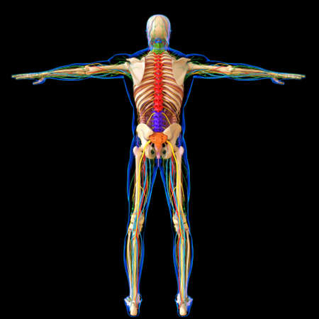 Conceptual Anatomy human body on dark blue background. 3D illustration
