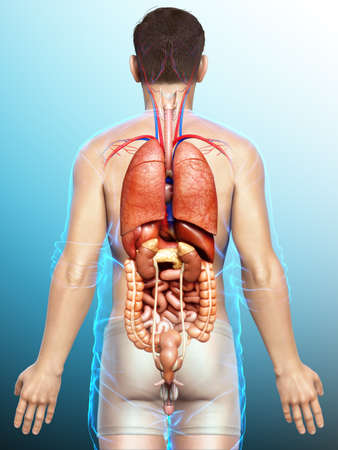 3d rendered medically accurate illustration of the male digestive system and circulatory system