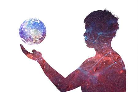 Man holding Earth planet in his hand. Elements of this image furnished by NASA
