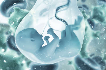 Human fetus on abstract background. 3d render