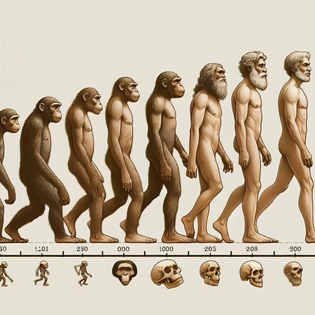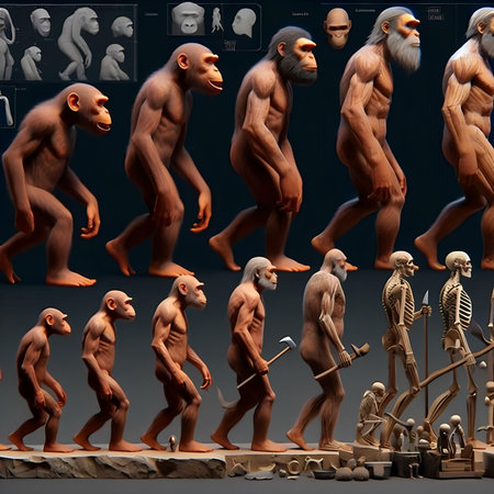Human evolution from ape to monkey, 3D illustration of human evolution