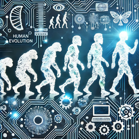 Monkey evolution concept as a group of monkeys running in a group of human evolution evolution as a metaphor for evolution and evolution.
