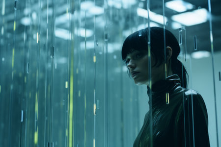 Artificial intelligence with a woman's face monitors, studies and controls people's behavior. horizontal photo