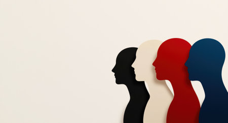 Abstract Mural Art with Colorful Overlapping Human Profile Silhouettes on Concrete Wall