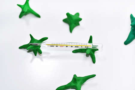 man hand holding medical thermometer , top down