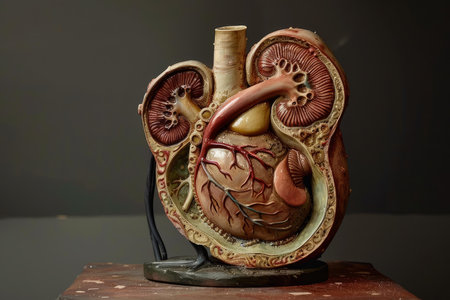 Detailed kidney model showing internal structures and functions for educational purposes