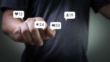 Contact us sms media man use smart phone social media network pop notification icons