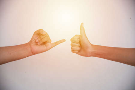 thumb for positive and one finger concept on white background