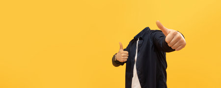 Headless person giving thumbs up against a bright yellow background