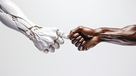 Graceful robotic fist in detailed bump with human showing precision