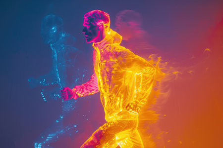 Illustration of a runner’s silhouette with a vibrant, energetic aura, embodying motion and endurance.