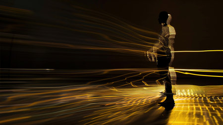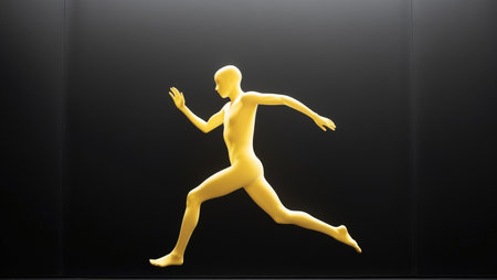 AI Generated. A golden silhouette of a person running is depicted on a black background