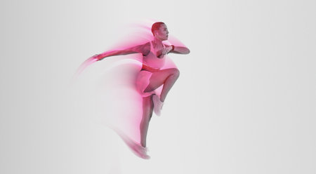 Chromatic human figure in motion: colorful aberration, artistic movement, expressive strokes, modern abstract glow, light spectrum form